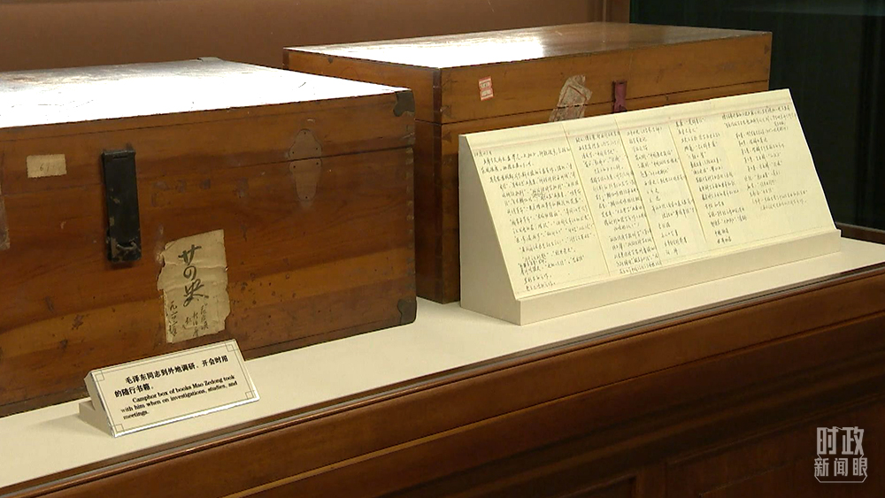 △這是毛澤東到外地調(diào)研、開會時用的隨行書箱,現(xiàn)陳列在豐澤園毛澤東同志故居。(總臺央視記者石偉明拍攝)