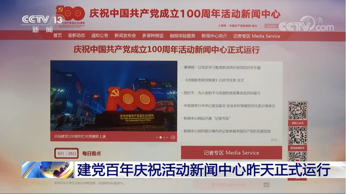建黨百年慶祝活動新聞中心已正式運行 提供多種服務