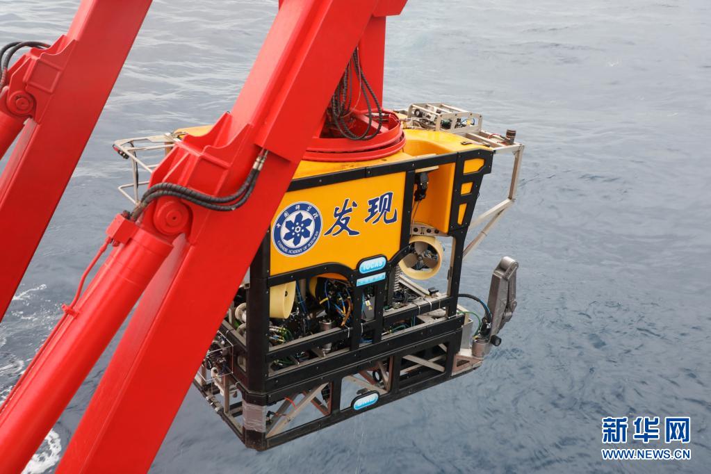 “科學”號科考船將無人纜控潛器放置在目標海域(2021年6月攝)。