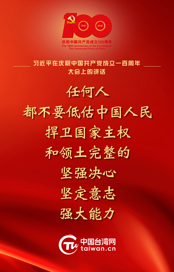 習近平在講話中指出,任何人都不要低估中國人民捍衛國家主權和領土完整的堅強決心、堅定意志、強大能力!(中國臺灣網制圖)