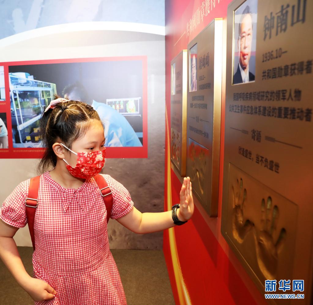7月2日,一名女孩在“共和國勛章獲得者手模”的展板前參觀。新華社記者 吳曉初 攝