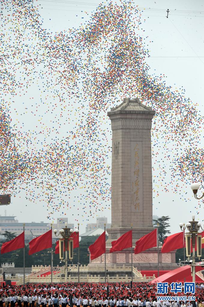 7月1日上午,慶祝中國共產黨成立100周年大會在北京天安門廣場隆重舉行。這是慶祝大會現場放飛氣球。 新華社記者 羅曉光 攝