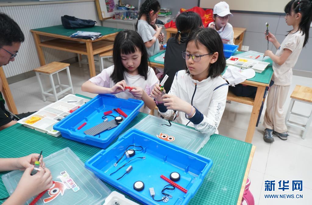 7月5日,在南京市長(zhǎng)江路小學(xué),孩子們?cè)趷?ài)心公益暑托班上課。