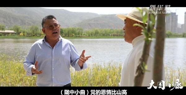 在甘肅省定西市,洮河水的引入破解了當(dāng)?shù)厍О倌陙淼陌l(fā)展瓶頸。擅長(zhǎng)隴中小曲的民間藝人“老調(diào)譜新詞”,將一首《引洮河》獻(xiàn)給他們的“救命河”“圓夢(mèng)河”。