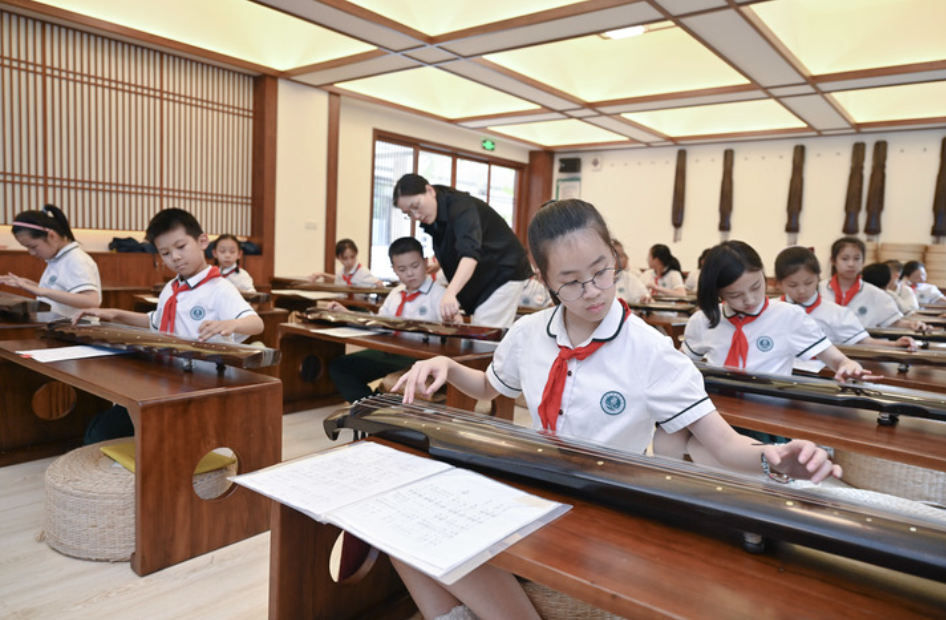 在福州市烏山小學,學生在參加課后古琴興趣班。新華社記者 宋為偉 攝