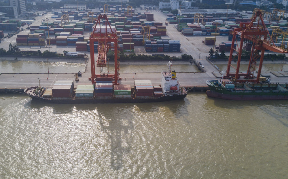 2021年6月3日,集裝箱貨輪停靠在中國(福建)自由貿易試驗區福州青州集裝箱碼頭(無人機照片)。新華社記者 宋為偉 攝