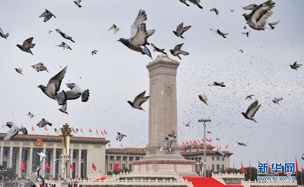 7月1日上午,慶祝中國共產黨成立100周年大會在北京天安門廣場隆重舉行。這是慶祝大會現場和平鴿展翅高飛。新華社記者 孫非 攝