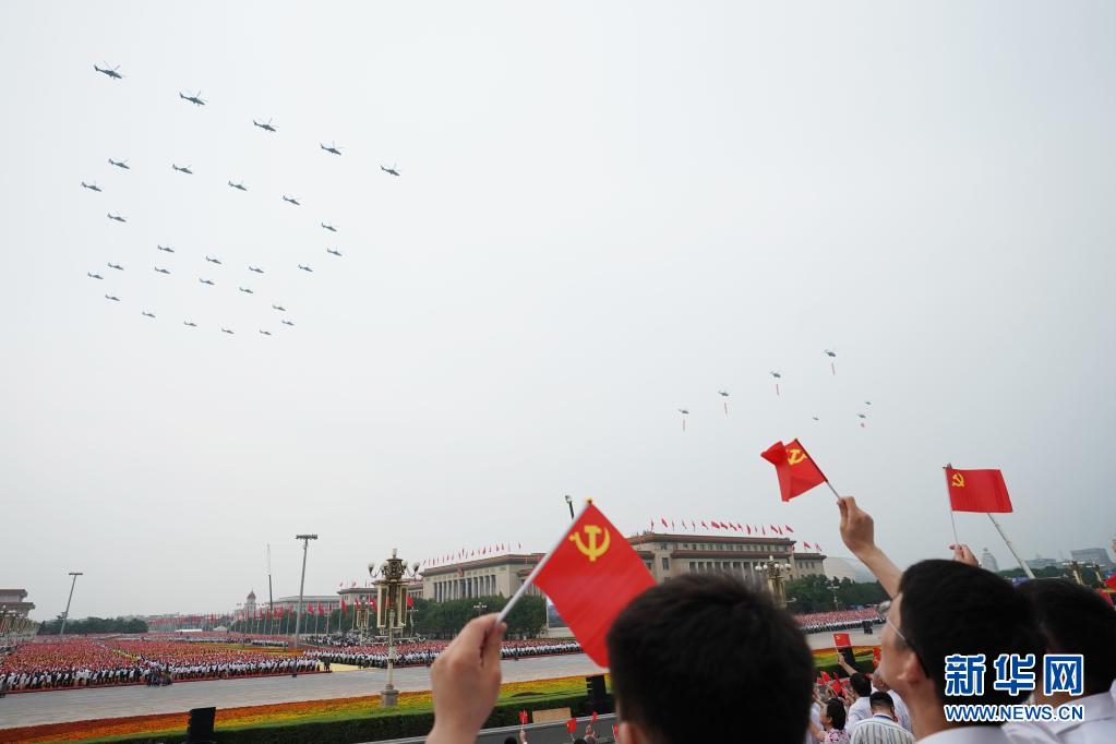 7月1日上午,慶祝中國共產黨成立100周年大會將在北京天安門廣場隆重舉行。這是飛行慶祝表演。新華社記者 鞠煥宗 攝