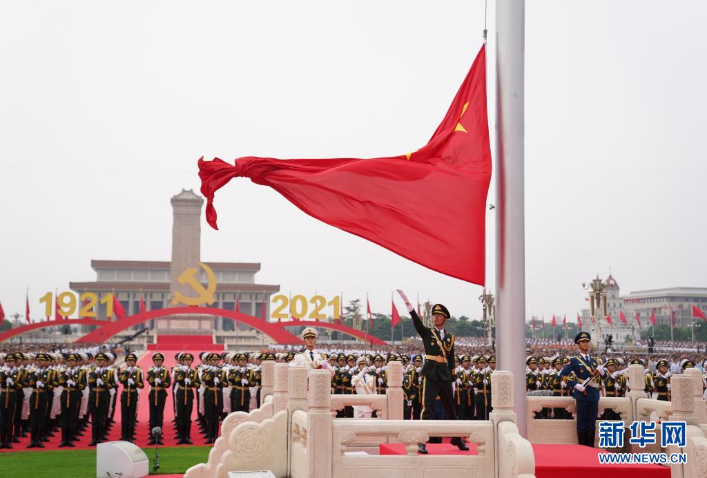 7月1日上午,慶祝中國共產黨成立100周年大會在北京天安門廣場隆重舉行。這是升國旗儀式。新華社記者 申宏 攝