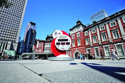 圖為7月22日在東京車站前的廣場上拍攝的東京奧運會倒計時電子時鐘。新華社發