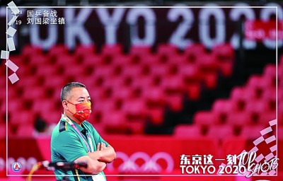 7月19日,中國乒乓球隊在東京體育館進行賽前訓練,這是中國乒乓球協會主席劉國梁在訓練現場。新華社發