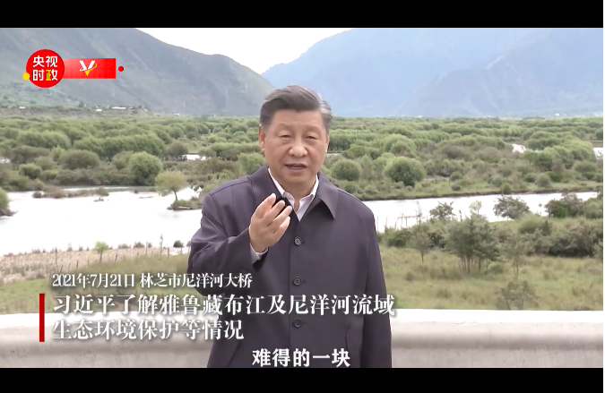 21日中午時分,在西藏考察調研的習近平總書記途經尼洋河大橋時停車,實地察看雅魯藏布江及尼洋河流域生態環境保護情況。習近平指出,雅魯藏布江水系是難得的一塊綠地、綠肺,它的生態還很脆弱。要以保護為主,保護住這一塊“凈土”,一起把這件事情做好。
