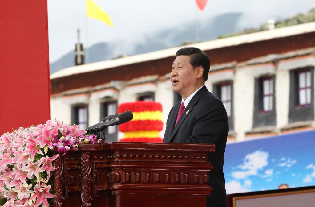 2011年7月19日,西藏和平解放60周年慶祝大會在拉薩舉行。習近平在慶祝大會上講話。新華社記者 丁林 攝
