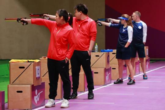 射擊10米氣手槍混合團體決賽中