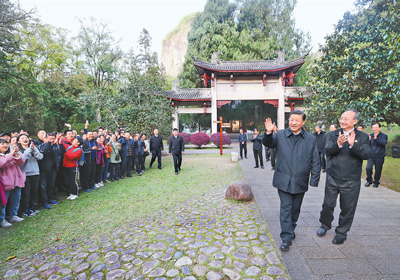 2021年3月22日至25日,中共中央總書記、國(guó)家主席、中央軍委主席習(xí)近平在福建考察。這是22日下午,習(xí)近平在南平武夷山朱熹園考察時(shí),向游客招手致意。新華社發(fā)