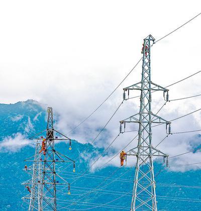 工人在527國道沿線架設線路。潘偉峰攝(影像中國)