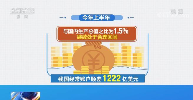 央視網消息:國家外匯管理局昨天(8月6日)公布的2021年二季度及上半年國際收支平衡表初步數據顯示,今年上半年,我國經常賬戶順差1222億美元,與國內生產總值之比為1.5%,繼續處于合理區間。