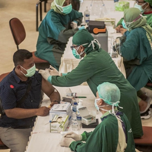 1月28日,一名醫(yī)務(wù)工作者在印度尼西亞日惹接種中國科興公司的新冠疫苗。新華社發(fā)(蘇普里揚托攝)