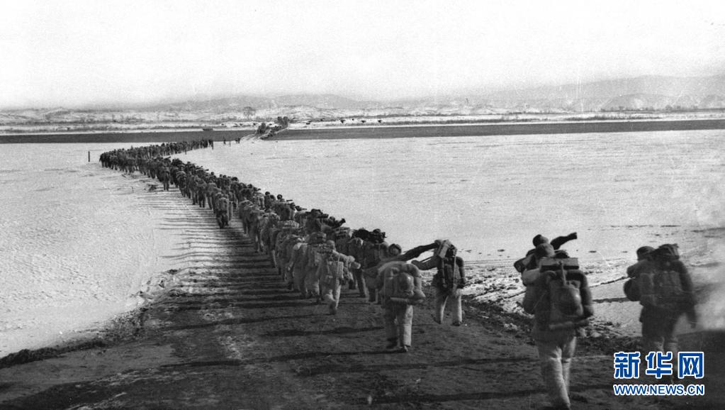 1950年10月19日,中國人民志愿軍雄赳赳、氣昂昂跨過鴨綠江,和朝鮮人民一道共同抗擊侵略者。新華社發(黎民 攝)