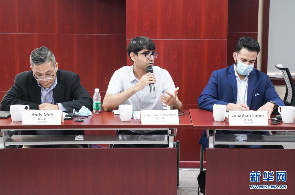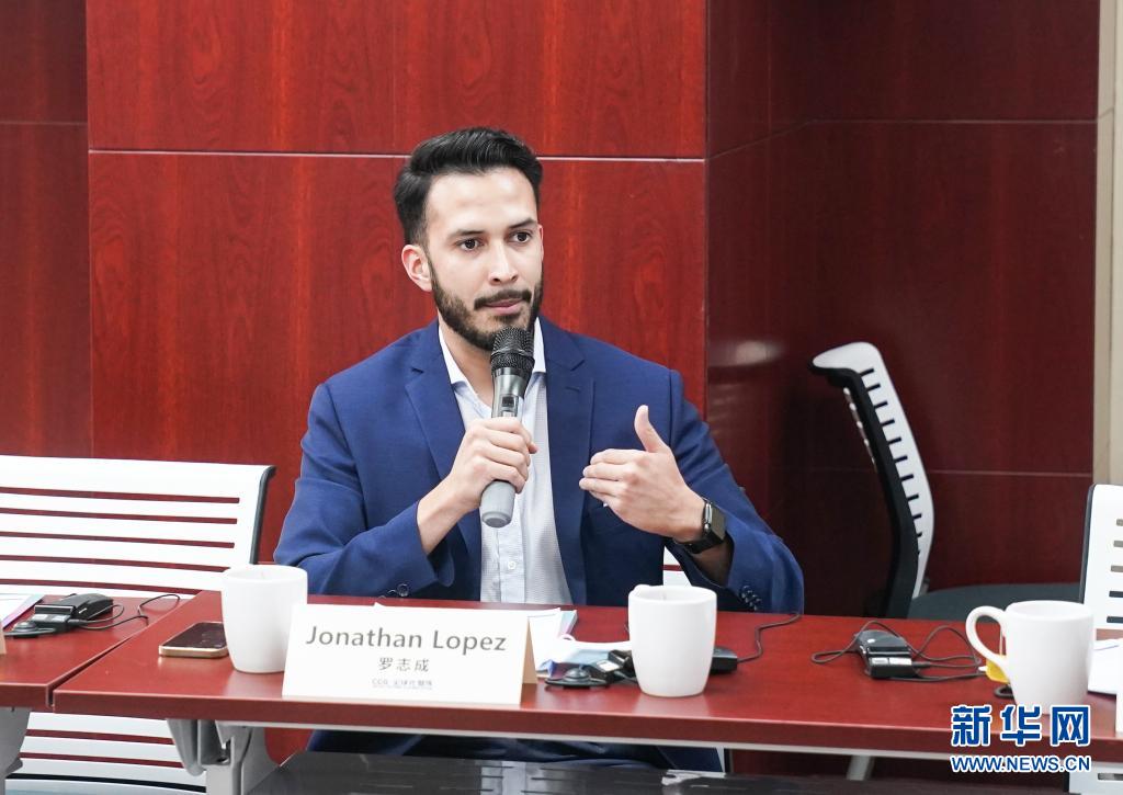 8月12日,哥倫比亞、加拿大雙國(guó)籍青年羅志成在“命運(yùn)與共 青春力量”專題研討會(huì)上發(fā)言。新華社記者 陳曄華 攝