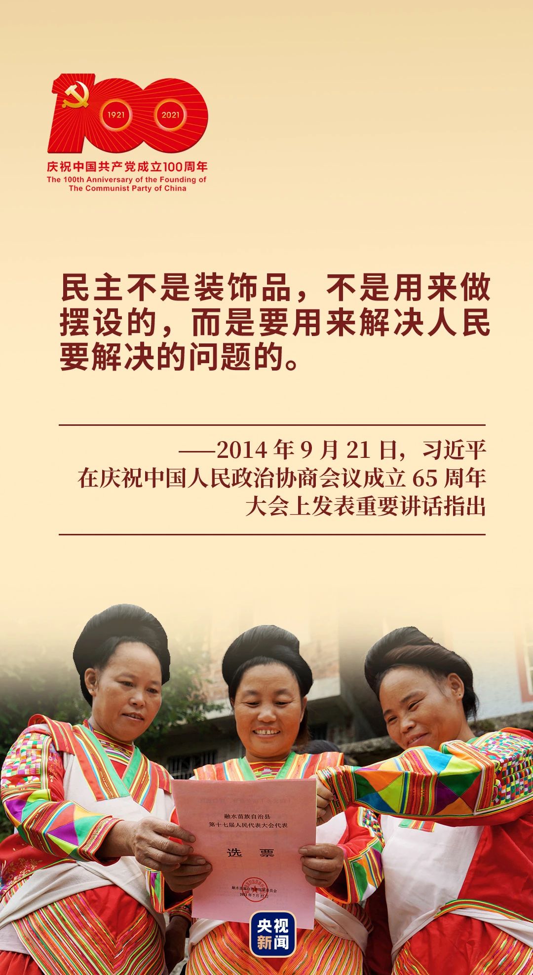 2021年7月1日,習近平總書記在慶祝中國共產黨成立100周年大會上發表重要講話指出,“踐行以人民為中心的發展思想,發展全過程人民民主。”