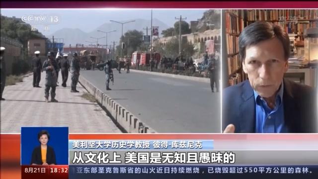 美利堅大學歷史學教授 彼得·庫茲尼克:盡管美軍擁有強大的武器,還有著盟國協助,但是美國當時的入侵注定會以失敗告終。他們根本就不明白,軍事干涉他國意味著什么,從文化上,美國是無知且愚昧的,也根本不了解阿富汗國內的狀況。