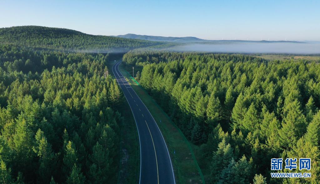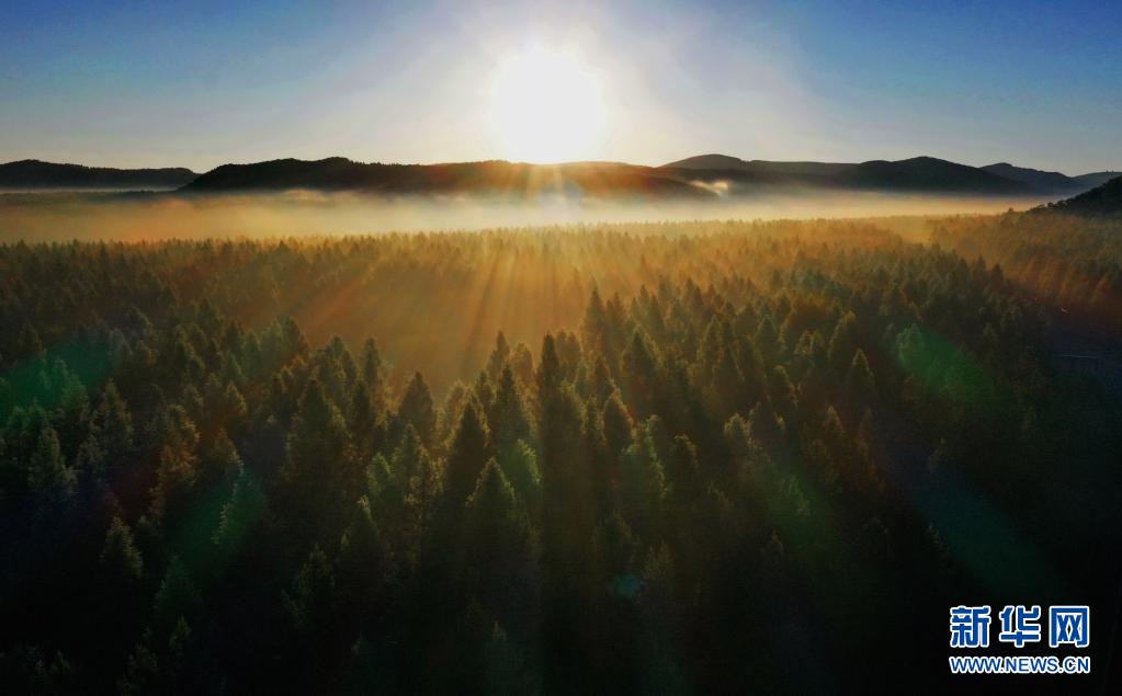 2021年6月27日拍攝的塞罕壩國家森林公園晨景(無人機照片)。新華社記者 楊世堯 攝