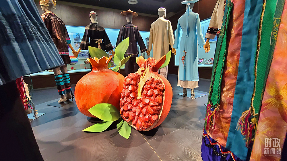 △習近平總書記曾經形容,各民族就像石榴籽一樣緊緊抱在一起。這是廣西民族博物館中的主題雕塑。(總臺央視記者趙化拍攝)
