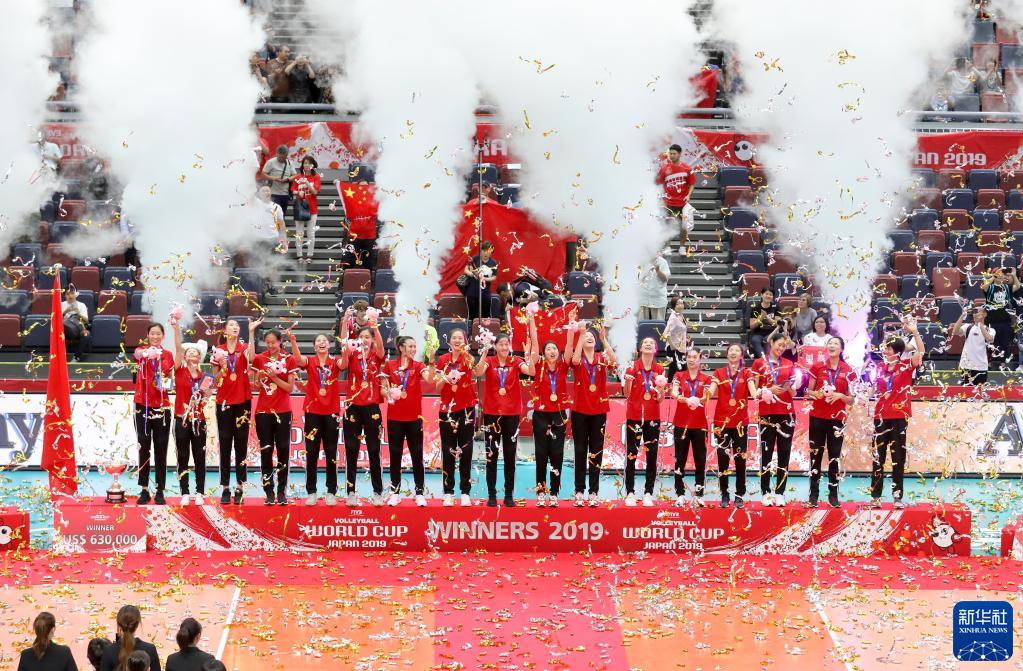 2019年9月29日,第十三屆女排世界杯頒獎(jiǎng)儀式在日本大阪舉行,中國(guó)隊(duì)在本屆比賽中以十一連勝的戰(zhàn)績(jī)奪得了冠軍。新華社記者杜瀟逸攝
