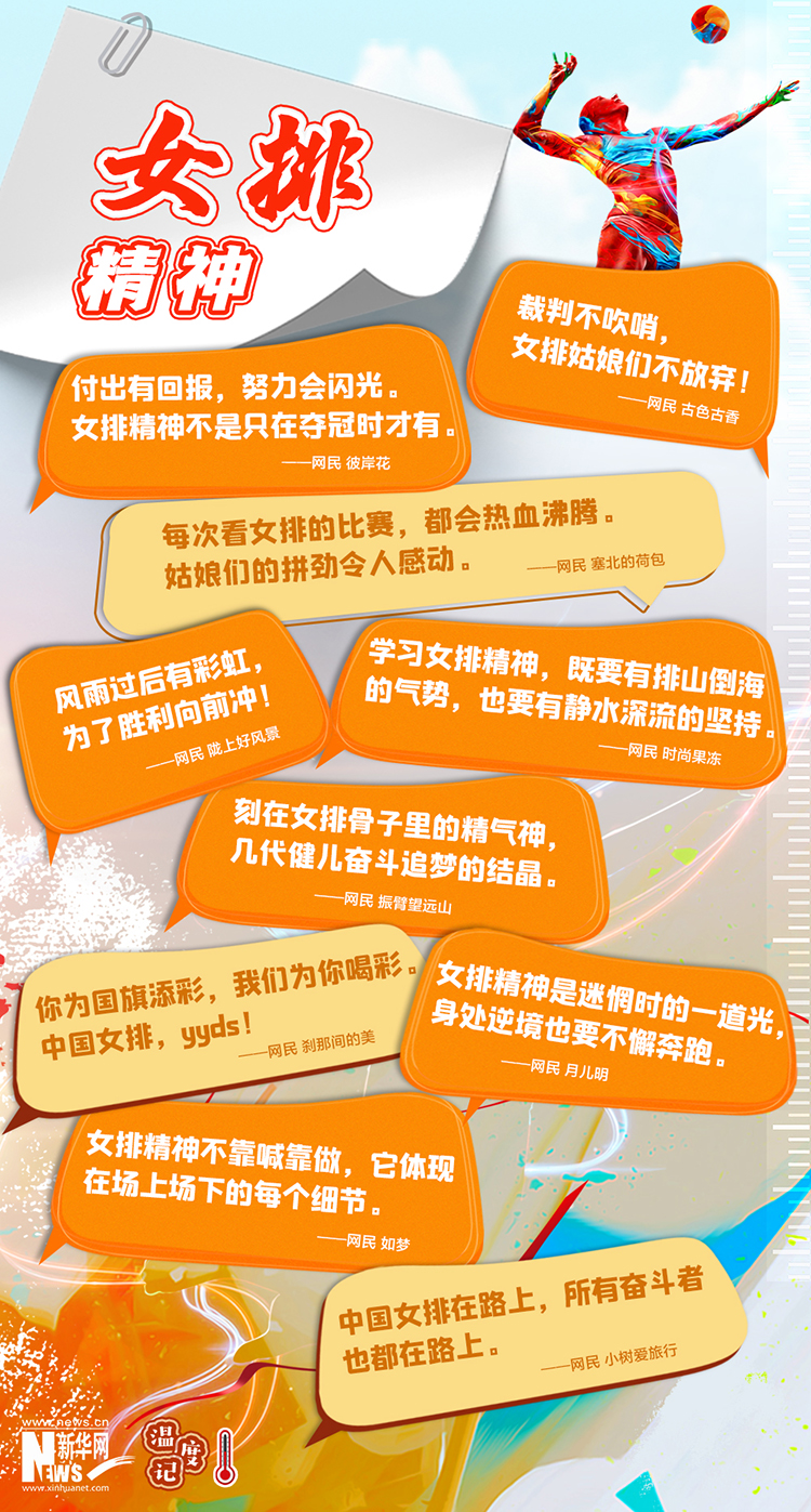 有這樣一支運動隊伍,讓幾乎每個中國人都熱切關注,提到它,很多人會豎起大拇指,“中國女排,那太厲害了。”與中國女排并列出現最多的是一種影響了幾代中國人的精神——女排精神:祖國至上、團結協作、頑強拼搏、永不言敗。