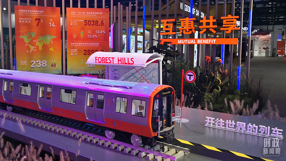 △中國服務貿易發展成就展亮相服貿會。(總臺央視記者鐘鋒拍攝)