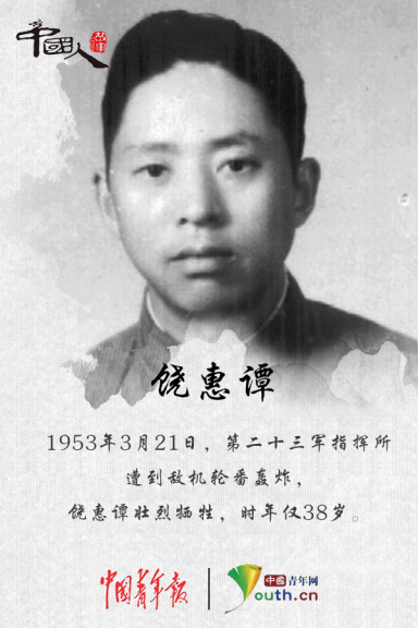 饒惠潭身經百戰,屢建功勛,5次負傷,身上留下累累傷痕。朝鮮內戰爆發之后,時任華東軍區公安第16師師長的饒惠潭,一連幾次向上級打報告請求赴朝作戰,均未被批準。執著的饒惠潭驅車趕到上海,徑直闖進陳毅的辦公室說:“老總,我實在耐不住了,您就批準我去朝鮮戰場吧!”