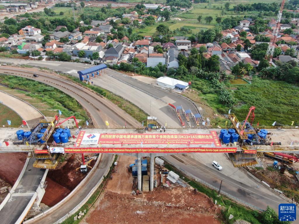 這是2020年5月10日拍攝的印度尼西亞雅萬高鐵首個多跨連續(xù)梁合龍現(xiàn)場。雅萬高鐵項(xiàng)目是中國高鐵全系統(tǒng)、全要素、全生產(chǎn)鏈走出國門的“第一單”,也是“一帶一路”倡議的標(biāo)志性工程和印尼國家戰(zhàn)略項(xiàng)目。新華社記者 杜宇 攝