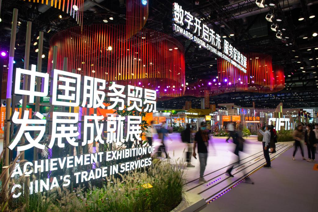 這是9月4日拍攝的國(guó)家會(huì)議中心中國(guó)服務(wù)貿(mào)易發(fā)展成就展現(xiàn)場(chǎng)。(新華社記者陳鐘昊攝)