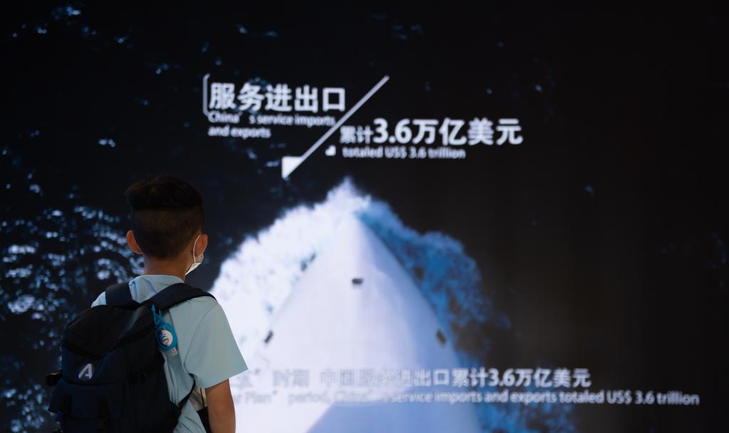 9月4日,觀眾在國(guó)家會(huì)議中心參觀中國(guó)服務(wù)貿(mào)易發(fā)展成就展。(新華社記者魯鵬攝)