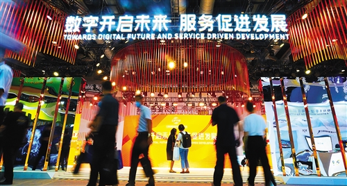 本屆服貿會主題為“數字開啟未來,服務促進發展”,重點展示有關國家和地區、我國各省區市及港澳臺服務貿易特色優勢和最新成果。(經濟日報記者翟天雪攝影報道)