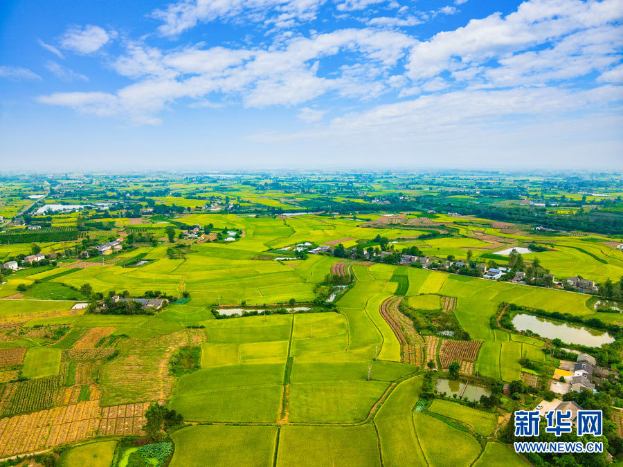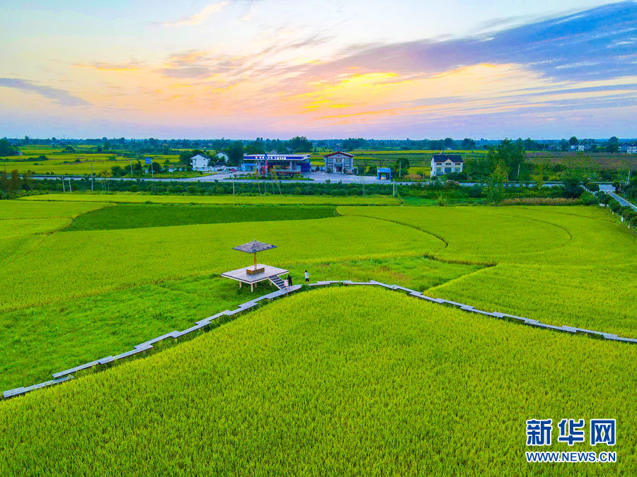 航拍湖北省枝江市問安鎮(zhèn)袁碼頭村田園風景如畫。新華網(wǎng)發(fā) 陳黃奎 攝