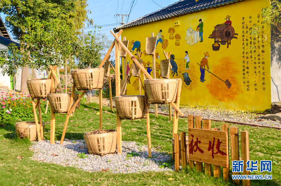 走進湖北省枝江市問安鎮(zhèn)袁碼頭村,道路干凈整潔,田里稻谷金黃,一排排民居別具荊楚風韻,“春耕、夏耘、秋收、冬藏”的村灣裝飾造型讓人眼前一亮。