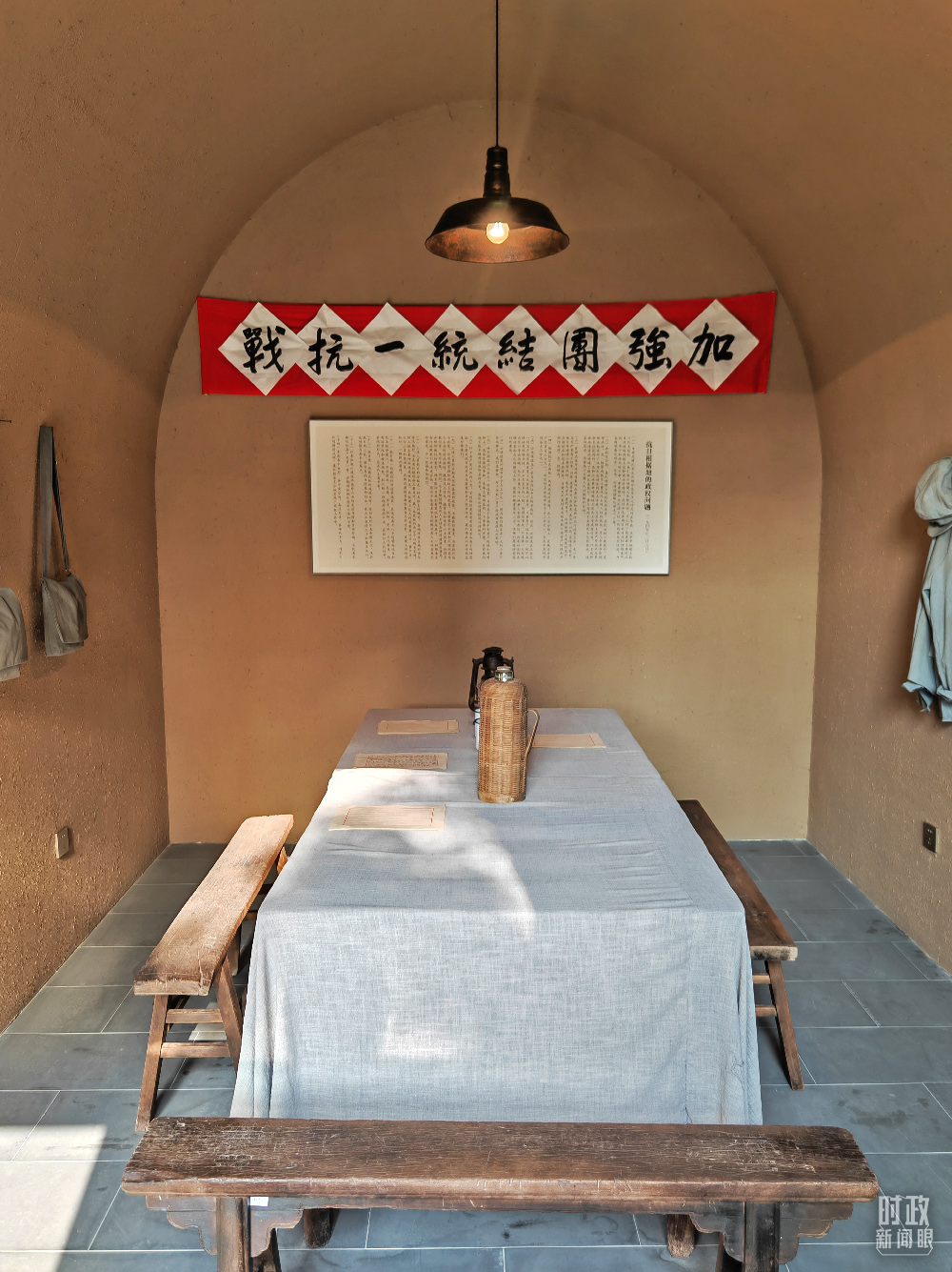 △綏德地委舊址內(nèi),“建設(shè)模范的抗日民主根據(jù)地”專題展示。(總臺(tái)央視記者彭漢明拍攝)