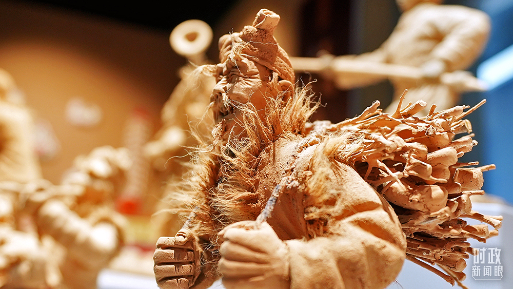△綏德泥塑。由于陜北黃土質(zhì)地松散、不易成型,工匠在和泥過程中添加蜂蜜、食用油和棉花,用來增加黃土的粘度和韌性。(總臺(tái)央視記者張宇拍攝)
