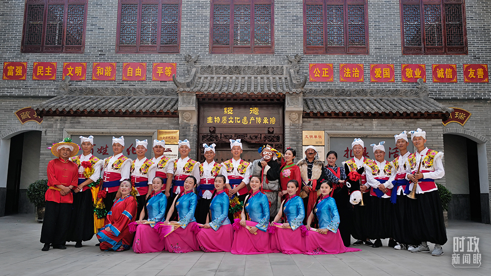 △當(dāng)天在非遺陳列館為總書記表演的演員合影。(總臺(tái)國(guó)廣記者李晉拍攝)