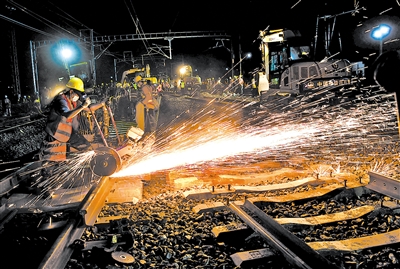 不久前,施工人員正在安九高鐵廬山站對武九客專正線進行回撥施工。