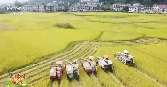 央視網(wǎng)消息:金秋時(shí)節(jié),稻花飄香。湖南益陽(yáng)安化縣的木溪村已是金黃一片,村子里400多畝富硒大米進(jìn)入收割季。
