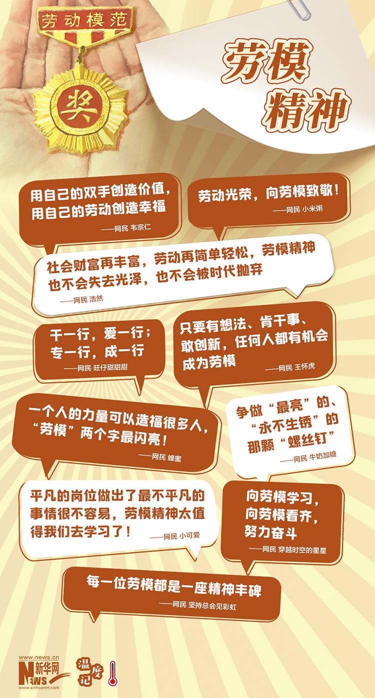 勞動之星,照亮奮斗的坐標。無論何時,勞模精神永不褪色,正如網民所說,“每一位勞模都是一座精神豐碑”。以勞模為標尺,未來必將涌現更多“最美的勞動者”,在平凡的崗位上續寫更多不平凡的故事,在百舸爭流、千帆競發的洪流中勇立潮頭,在報效祖國、服務人民的人生中大有作為。(文字:董璐 海報設計:王曄)