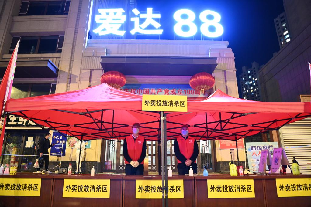愛達88小區(qū)是目前哈爾濱市主城區(qū)中唯一的中風(fēng)險地區(qū)。記者在這里看到,社區(qū)門前拉有警戒線,門外劃定了外賣投放消殺區(qū)和專用人員通道,社區(qū)工作人員和志愿者穿著厚厚的衣服在站崗。