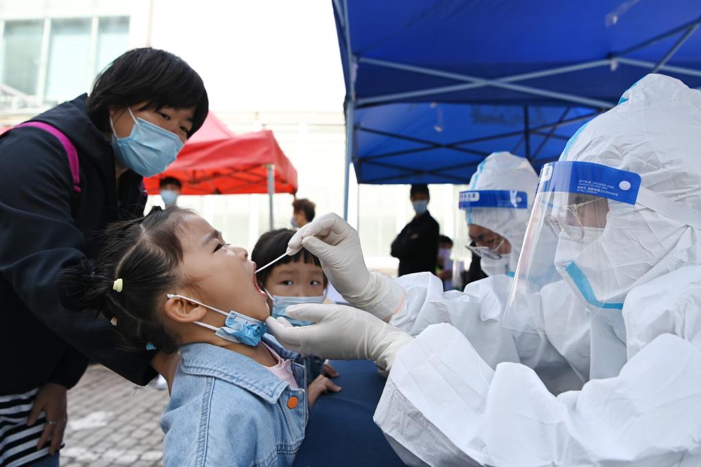 9月23日,在哈爾濱市香坊區(qū)一核酸檢測點,小朋友進行核酸檢測。新華社記者王建威攝