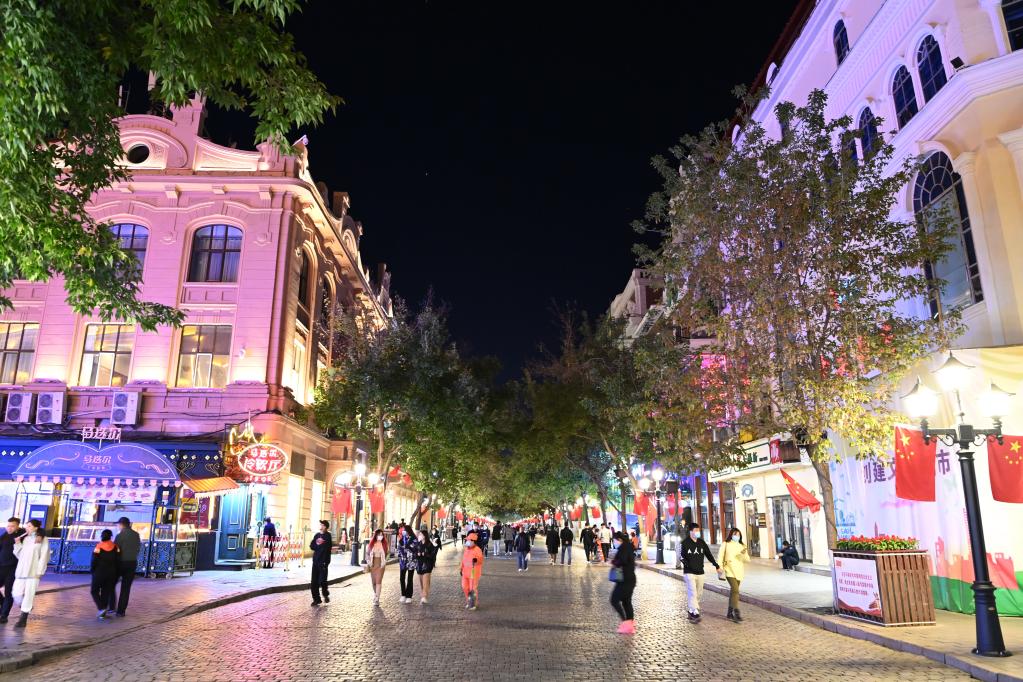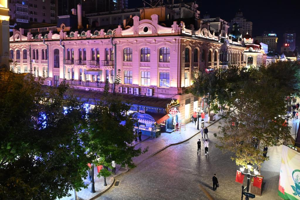 9月23日,哈爾濱市中央大街夜景。新華社記者王建威攝