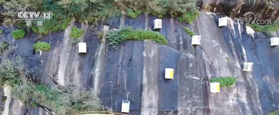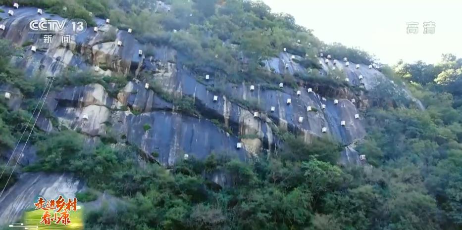 央視網(wǎng)消息:這里是北京密云馮家峪鎮(zhèn)西口外村的崖壁蜂場(chǎng),蜂農(nóng)將中華蜂安置在懸崖峭壁上,既保持了蜜蜂的野性,又能防御天敵的侵害。