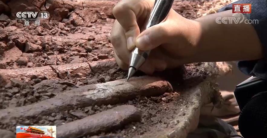 關注2號科考現(xiàn)場,F(xiàn)場工作已經(jīng)進入了關鍵階段,繼昨天發(fā)現(xiàn)了恐龍的薦椎之后,今天的科考現(xiàn)場會有什么樣的進展,馬上來連線總臺央視記者趙曙光。來給我們介紹一下科考現(xiàn)場的情況。
