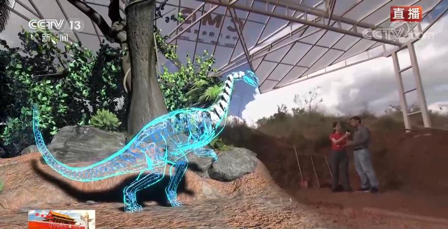 為了能夠更好地呈現(xiàn)科學發(fā)現(xiàn)的細節(jié),也為了讓您更能身臨其境感受侏羅紀世界,我們在前方也特別搭建了沉浸式混合現(xiàn)實系統(tǒng),在科考現(xiàn)場就能實時看到根據(jù)骨骼化石復原的恐龍模樣,實現(xiàn)野外互動直播。一眼穿越億萬年。
